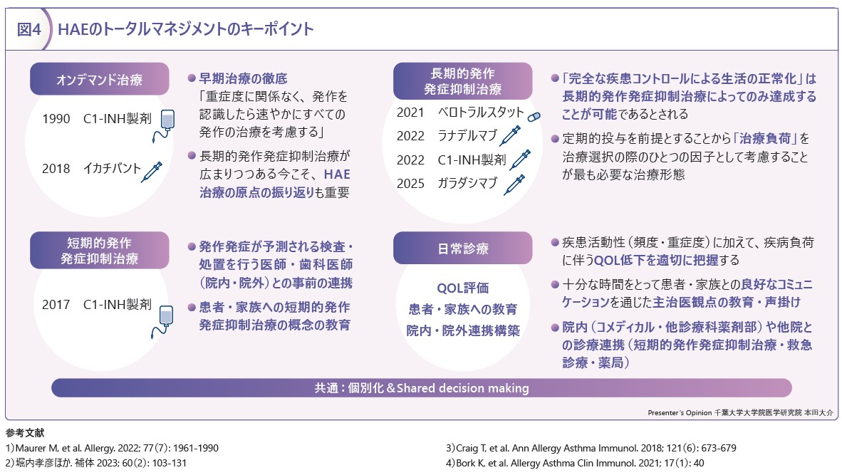 秀 HAEの治療環境は年々向上していますが、まだまだ課題があることを認識いたしました。患者さんの周りのステークホルダーが情報共有・協働しながら、患者さんが暮らしやすい方策をマネージできれば幸いです。