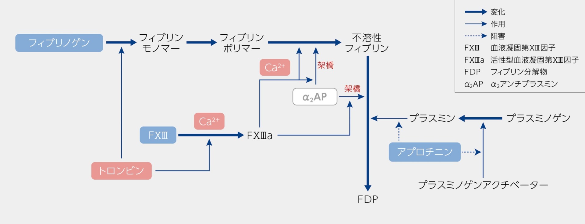 1. フィブリン分子間に共有結合を形成し、血栓の機械的安定性と生化学的安定性を高めます2)