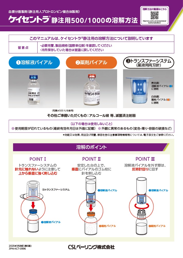 乾燥濃縮人プロトロンビン複合体ケイセントラ静注用