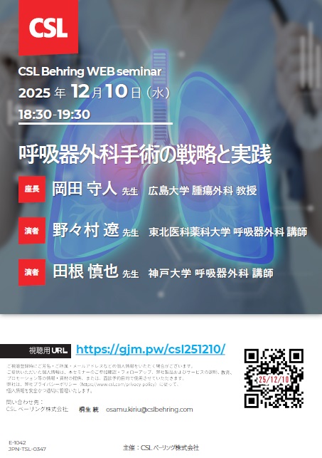 「呼吸器外科手術の戦略と実践」をテーマに、Webセミナーを開催いたします。